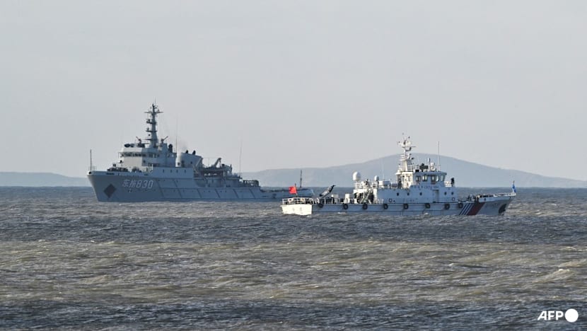 | Chinese ships patrol as the People’s Liberation Army (PLA) conduct military drills on Pingtan island, in eastern China’s Fujian province, the closest point to Taiwan, on Dec 30, 2025. (Photo: AFP/Adek Berry) |
